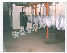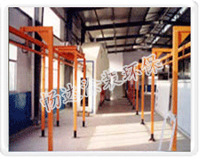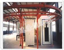 | 中央供粉系统:    该中央供粉系统是自动喷涂生产线中的关键组成部分。为自动枪连续不断地提供疏松均匀之粉末,确保喷枪出粉均匀、流畅,而实现连续供粉。  粉末闭路循环系统:    粉末闭路循环系统满足本涂装设备回收粉末循环使用的需要,使回收粉末自动供给自动枪再使用。提高了回收粉末利用率,减轻了工人的劳动强度。仿进口设计的文丘里粉泵使闭路循环系统气路畅通,粉末不堵塞,回收效果好。  空气净化系统:    经过以上设备处理后的压缩空气必须再经过涂装设备厂商配置的压缩空气终端空气净化系统的处理,使其气源的品质得以保证。畅达所压缩空气终端净化系统是采取物理过滤、化学干燥的方式,其工艺精良。经分离干燥净化后的气体符合以下性能参数,为喷粉提供之良好气源做出保证。    压缩空气终端净化系统组成是由油水分离器、空气干燥器、微杂质过滤器三大步骤。普通压缩空气中含有大量的油和水分,必须通过厂家配套的稳压除气罐及冷冻式干燥机、空气净化装置等设备过滤,但由于以上设备的功能局限,使输出的气体仍然含有一定量的油和水及空气杂物,必须通过压缩空气终端净化装置净化后才能够符合静电喷涂(涂装)之气源品质的需要。因此该系统是涂装设备工艺中的必备设备。  湿漆流平挥发道系统:    被喷漆工件受漆后,在密闭、清洁的、有一定空气流速的遂道内运行10—15分钟,称为挥发流平。主要目的是将湿漆工件表面的溶剂挥发气体在一定时间内挥发掉,挥发气体挥发的同时湿漆膜也得以流平,从而保证了漆膜的平整度和光泽度,在湿喷湿工艺中,流平也起到表干的作用,以便达到二度喷漆的质量。    挥发流平室必须有足够的长度,清洁度、风速等。挥发流平室是优质喷漆、烤漆涂装生产线工艺中的必须条件。  自动枪往复器系统:    本系统设计合理,性能稳定,往复距离及速度可调,保证工件全面均匀上粉,提高上粉率,减轻劳动强度,为自动化作业所必备。    该系统往复距离为1000--1500mm可调,速度12--36M/Min可调,采用变频电机,无级调速,方便自动化生产。 往复系统有气动原理式、液压原理式和机械原理式之分,但气动原理式受气压高低之影响,液压原理式会出现漏油等现象而导致功能异常,长期实践验证机械式往复系统性能稳定、可靠,采用链条传动,变频器控制,使其性能优越,故障低,能保证大生产的正常进行。 往复机可布枪两只、三只、四只不等,往复喷涂曲线是因喷枪之间的科学间距使其喷出粉末交错上粉,从而确保上粉率和上粉均匀。  输送悬挂系统:    输送系统的正常运行是确保整套设备工艺目的的实现的关键。该系统的任务是把未处理工件在正常设计线速度范围以内均匀、平稳、连续不断的运送到各设备工艺段,从而使各工艺段的工艺目的完成。整套设备各工艺段必须由输送悬挂系统的正常工作而连成一工艺设备整体,以达到连续生产的工作方式。  |
